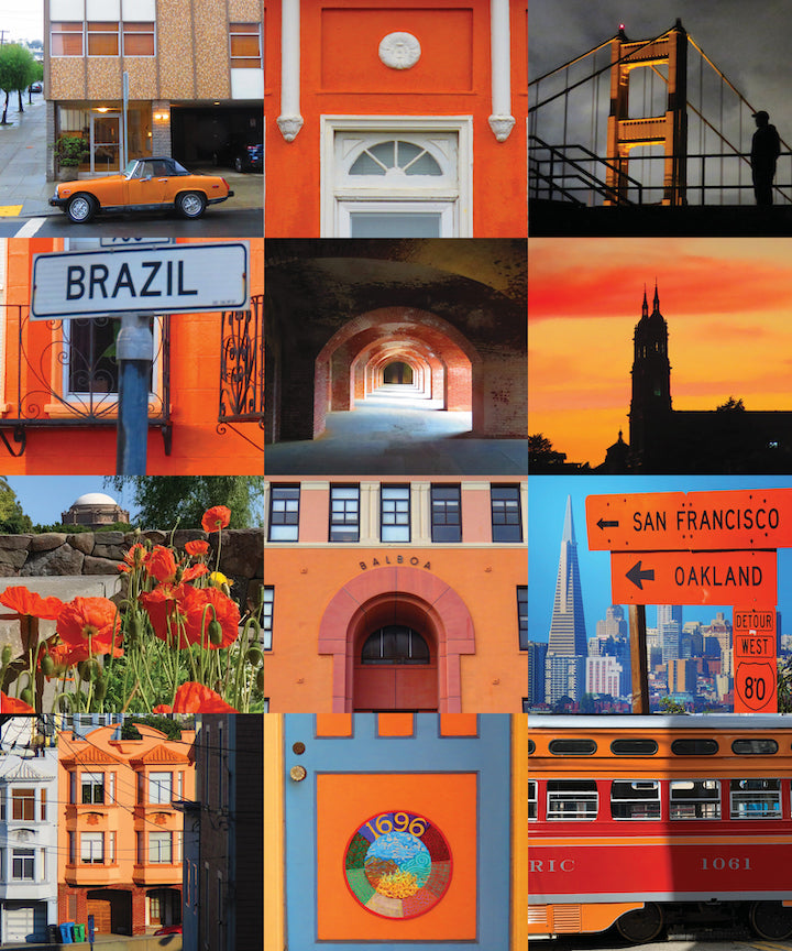The colors of San Francisco as an engaging collage. The orange story. Buildings, signs, murals, architectural elements, and perfect timing create one of a kind color themes.