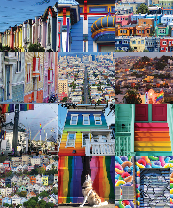 The colors of San Francisco as an engaging collage. Buildings, signs, murals, architectural elements, and perfect timing create one of a kind color themes.